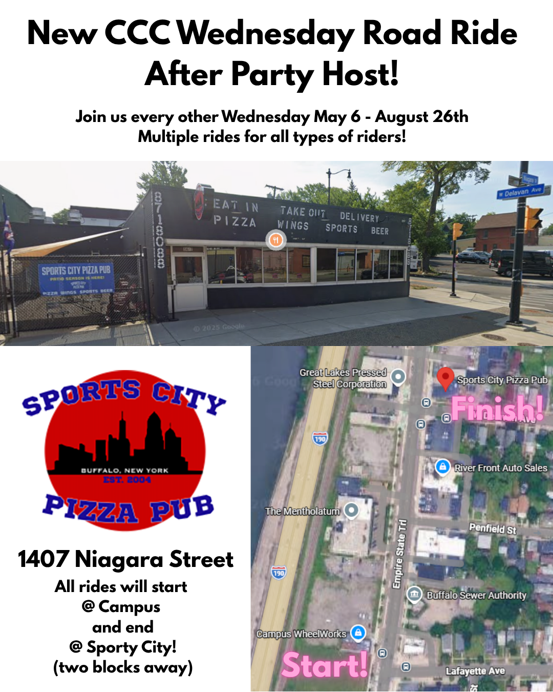 All Group ride routes will end at Campus Niagara (1330 Niagara St.) to enjoy some social time and get to know your fellow riders.